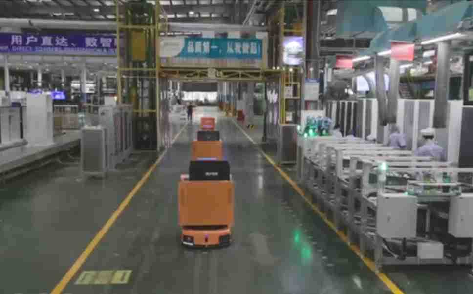 为车载冰箱物流配送打造的智能解决方案,,包含产中物流通过潜伏举升AMR搬运至线边,,产后成品物流智能仓储,,,流程包含产中物流智能齐套入库,,,,线边安灯叫料AMR智能配送至线边,,,,成品入库、、、、出库,,通过无人堆高车机器人,,,智能仓储管理替代人工作业管理,,,实现更高存储、、更高效率、、、、更具柔性化的解决方案。。。